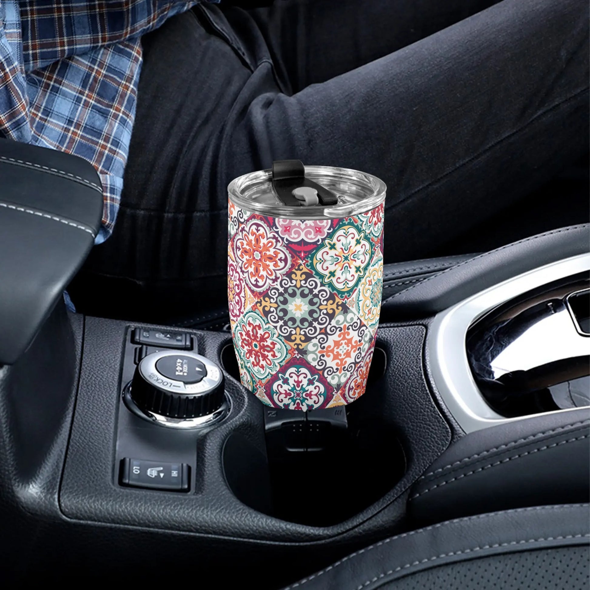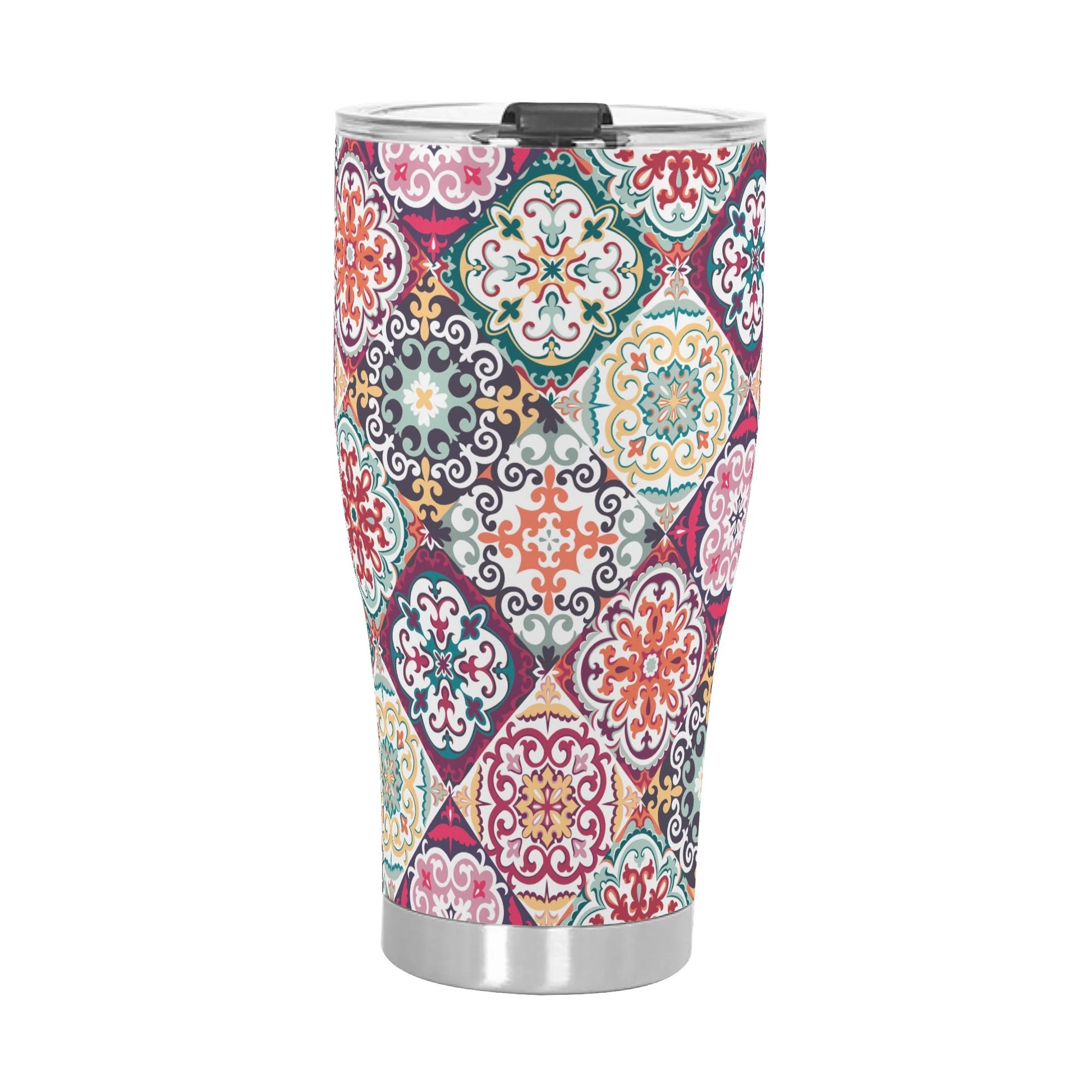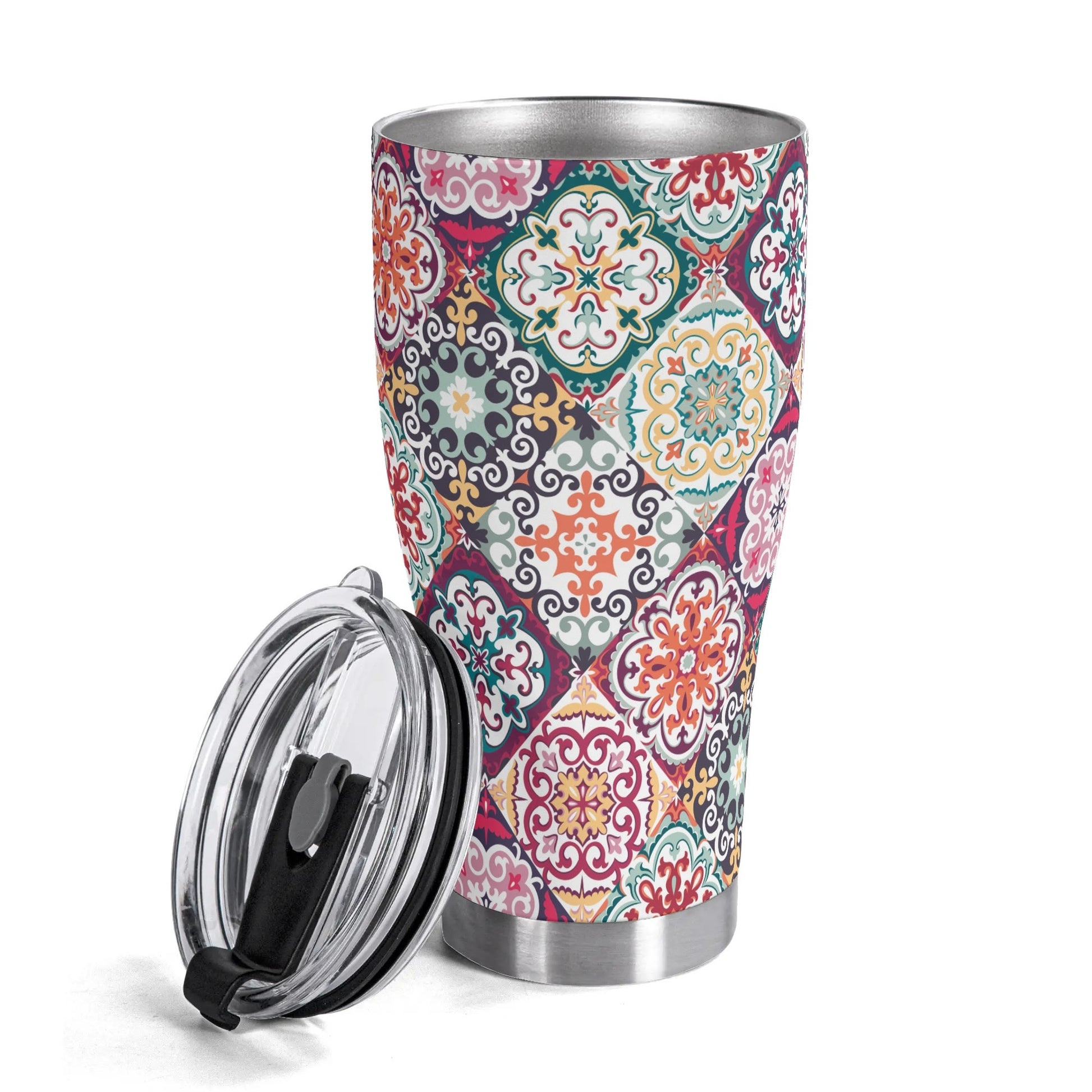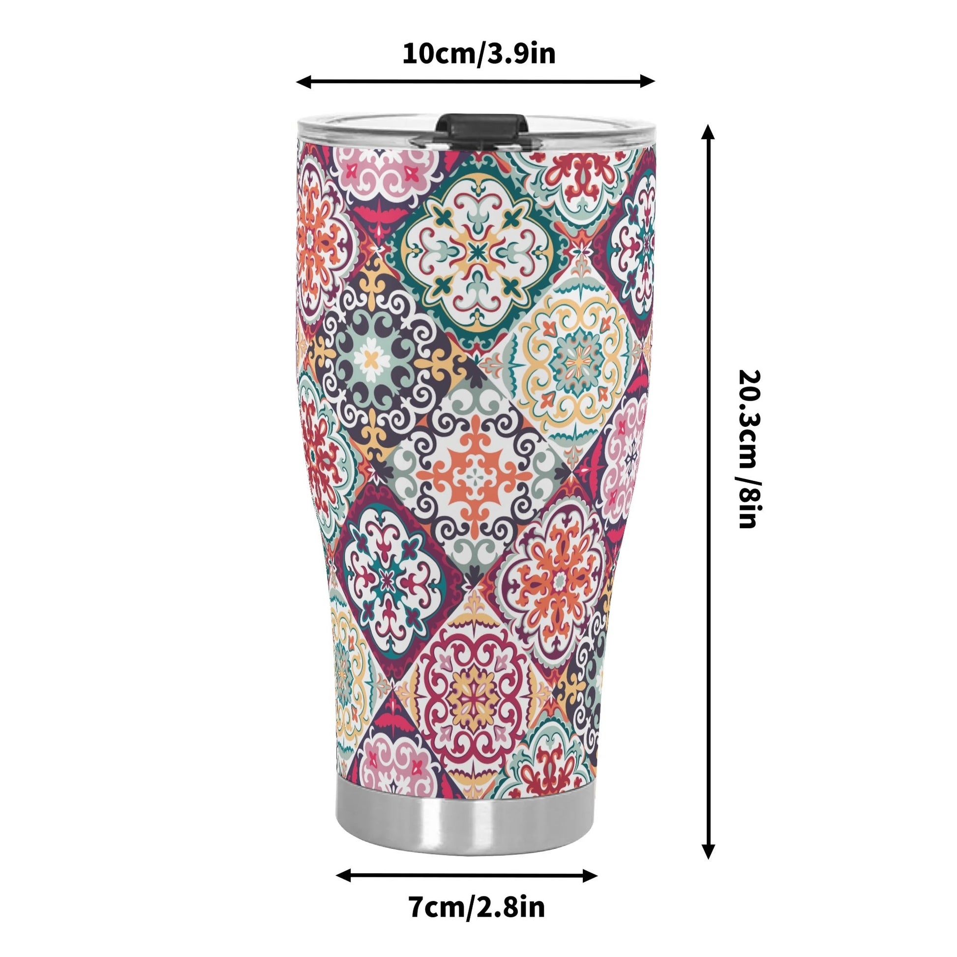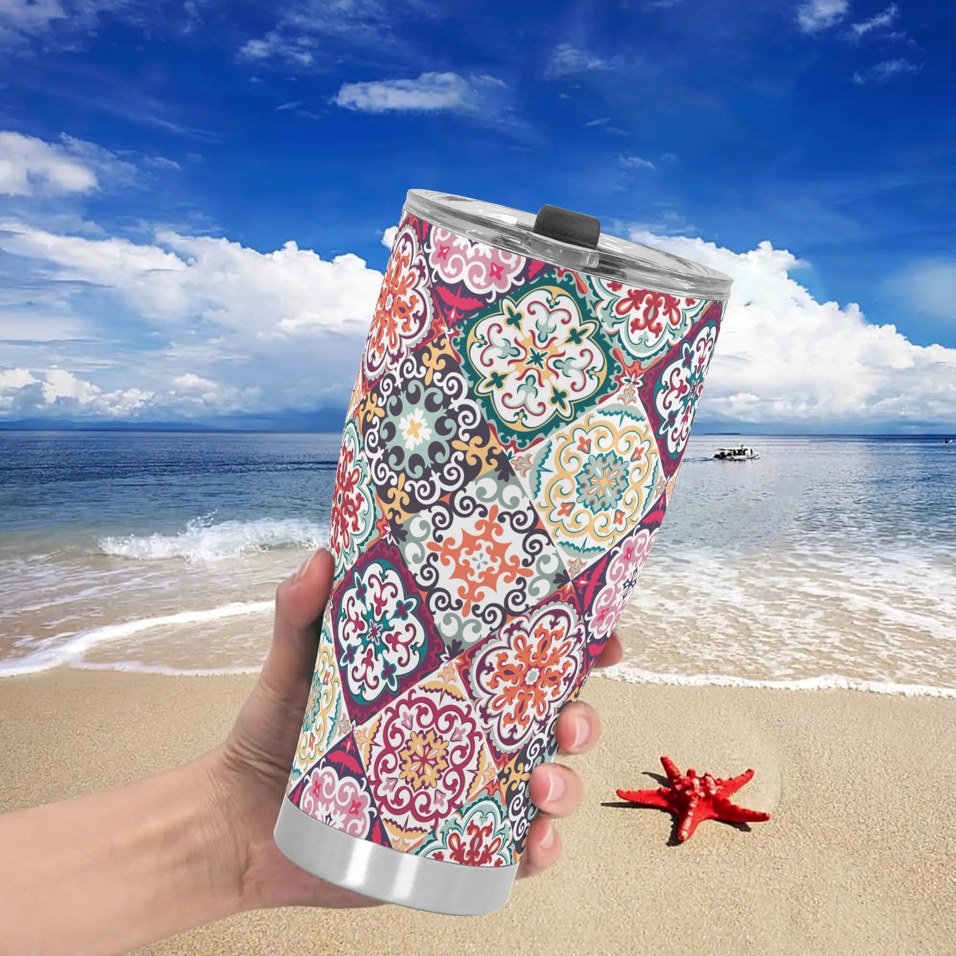 Introducing our Vibrante stainless steel tumbler adorned with vibrant Portuguese tile patterns. Perfect for hot and cold beverages, it features a secure lid and double-wall insulation for optimal temperature retention.