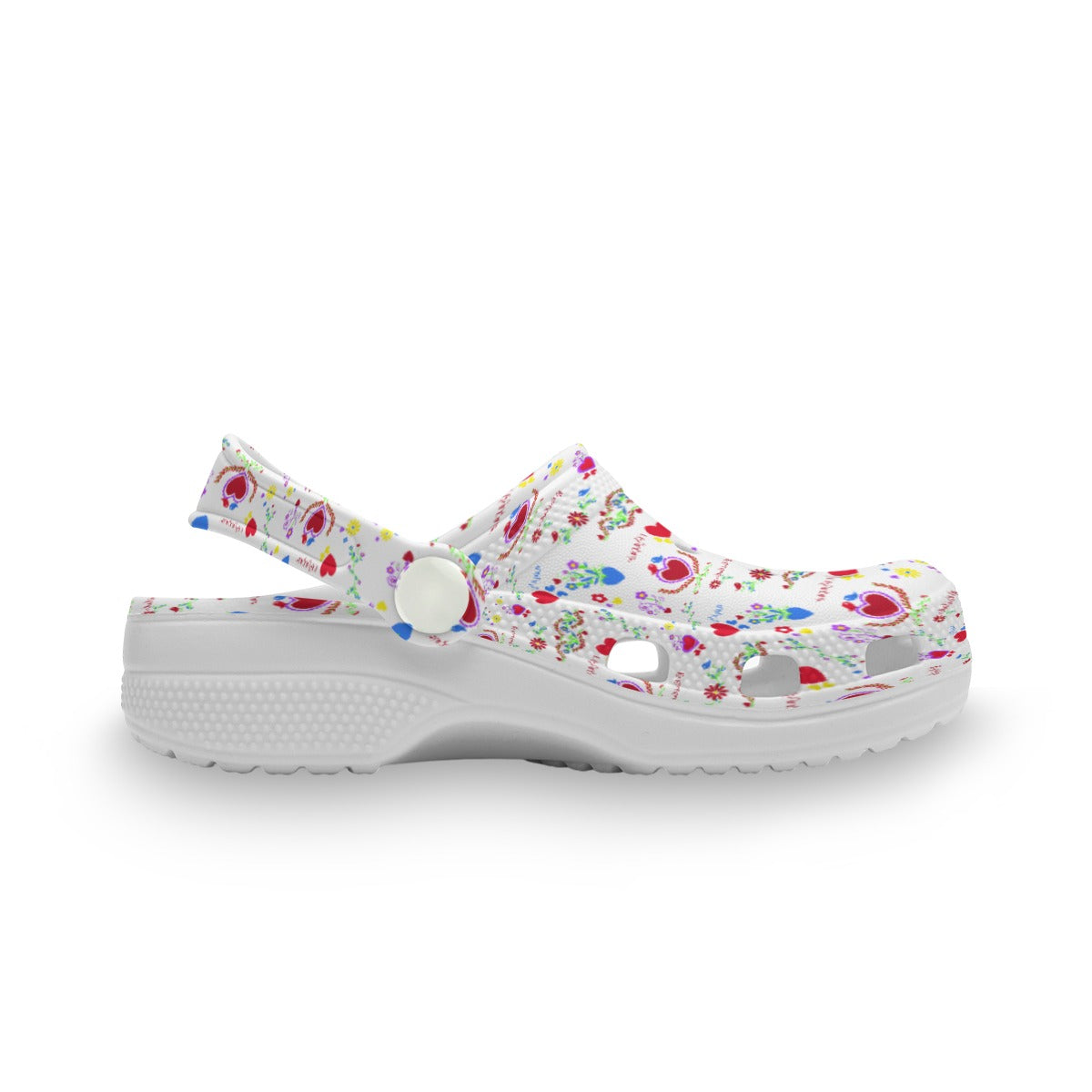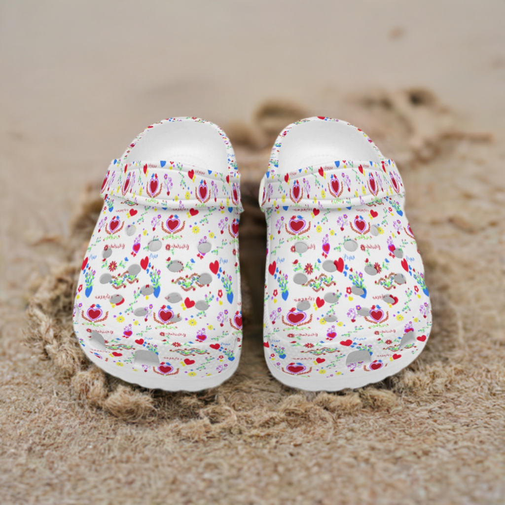 Apresentamos os nossos Sapatos Hole Infantil Amor com o tradicional padrão português Lenço de Namorados, perfeitos para adicionar um toque cultural ao guarda-roupa do seu filho. Confeccionados em EVA de alta qualidade, esses calçados são antiderrapantes, de secagem rápida e respiráveis, garantindo conforto o dia todo. Versáteis e cómodas, podem ser usadas como sandálias ou chinelos, adaptando-se às necessidades do seu filho. Seja na praia, na piscina ou no playground, esses calçados oferecem estilo e praticidade. Deixe seu filho sair com conforto e tradição com estes sapatos charmosos e funcionais.