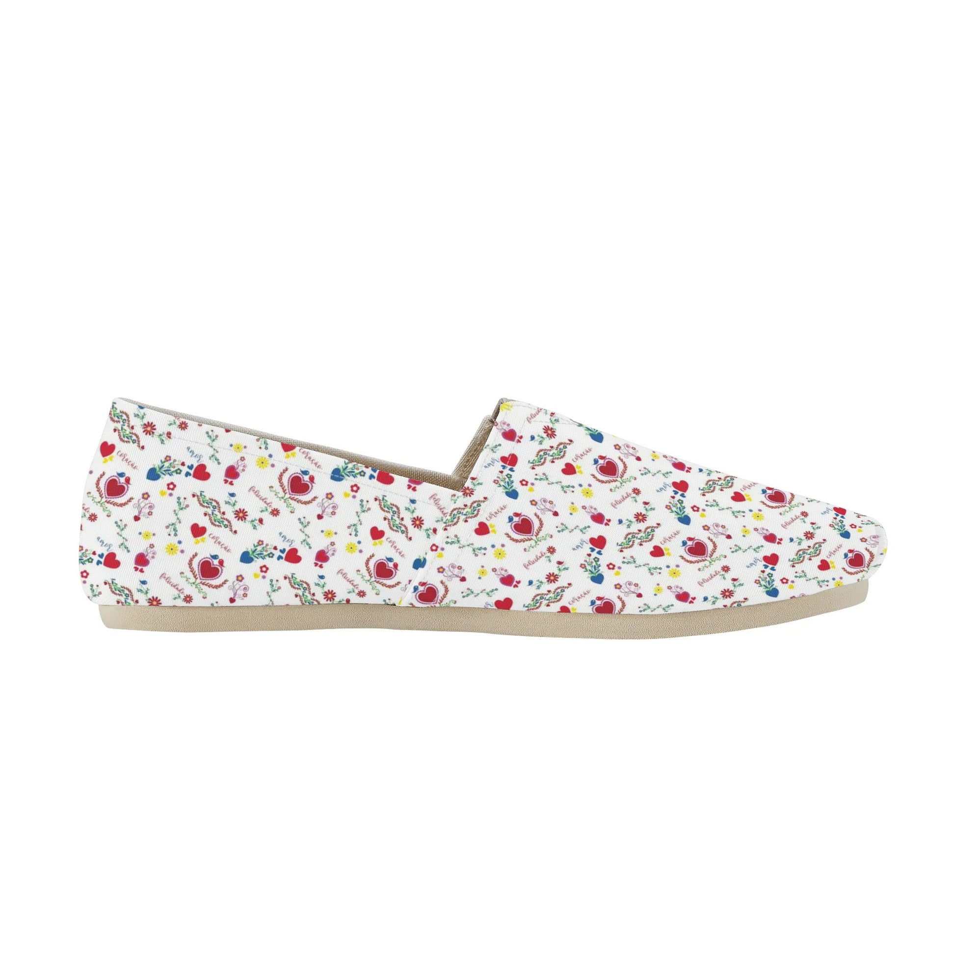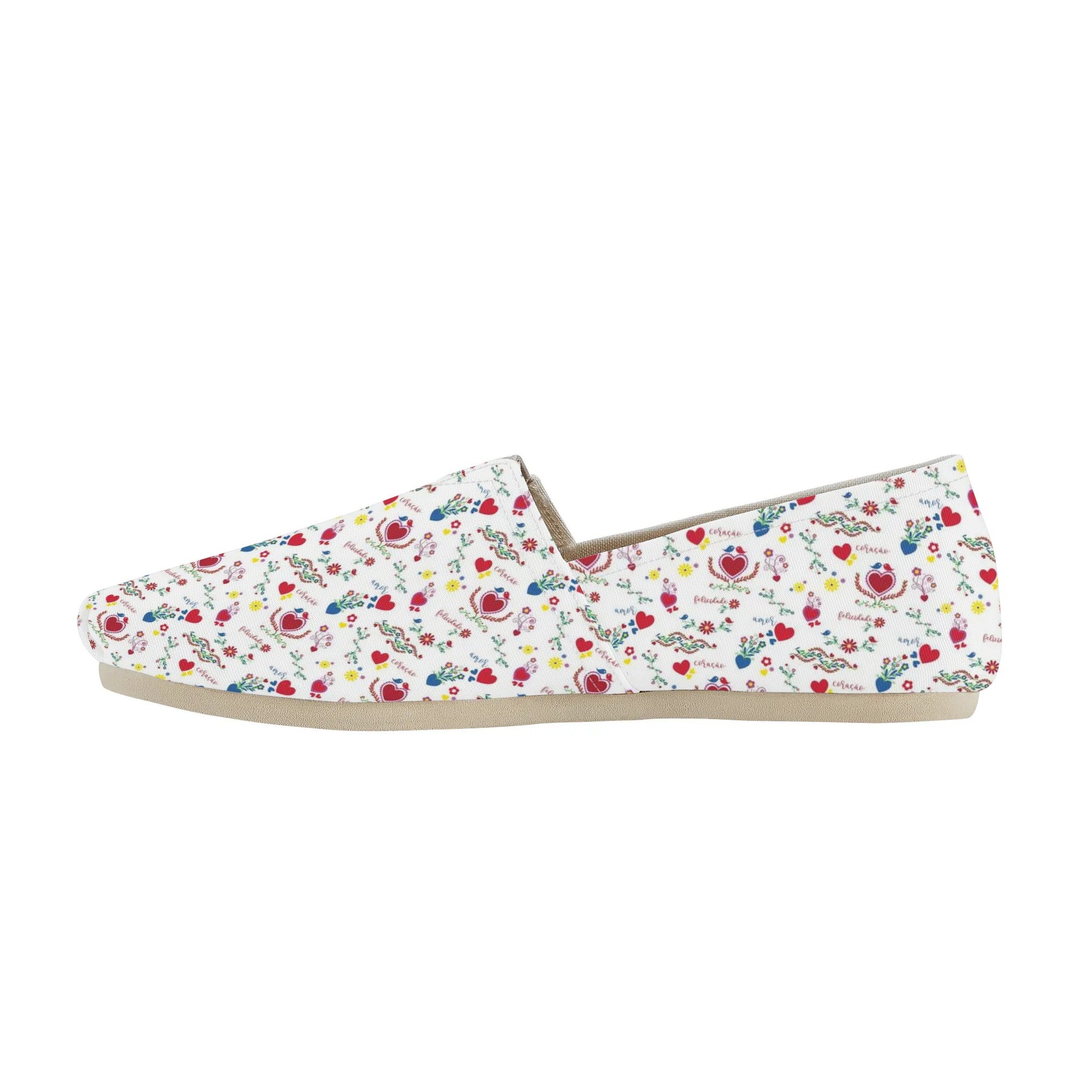 Apresentamos o Sapato Casual Feminino Amor, com o encantador padrão tradicional português Lenço de Namorados. Este sapato estiloso combina charme cultural com conforto moderno. Sua construção de estilo plano garante fácil colocação e retirada, perfeita para mulheres em movimento. Confeccionada em lona de alta qualidade, a parte superior oferece um ajuste confortável e respirável, ideal para uso o dia todo. O design de baixa manutenção facilita o cuidado, mantendo seus sapatos com aparência fresca e vibrante. Esteja você fazendo tarefas ou curtindo um passeio casual, o sapato casual feminino Amor adiciona um toque de elegância ao seu guarda-roupa do dia a dia.