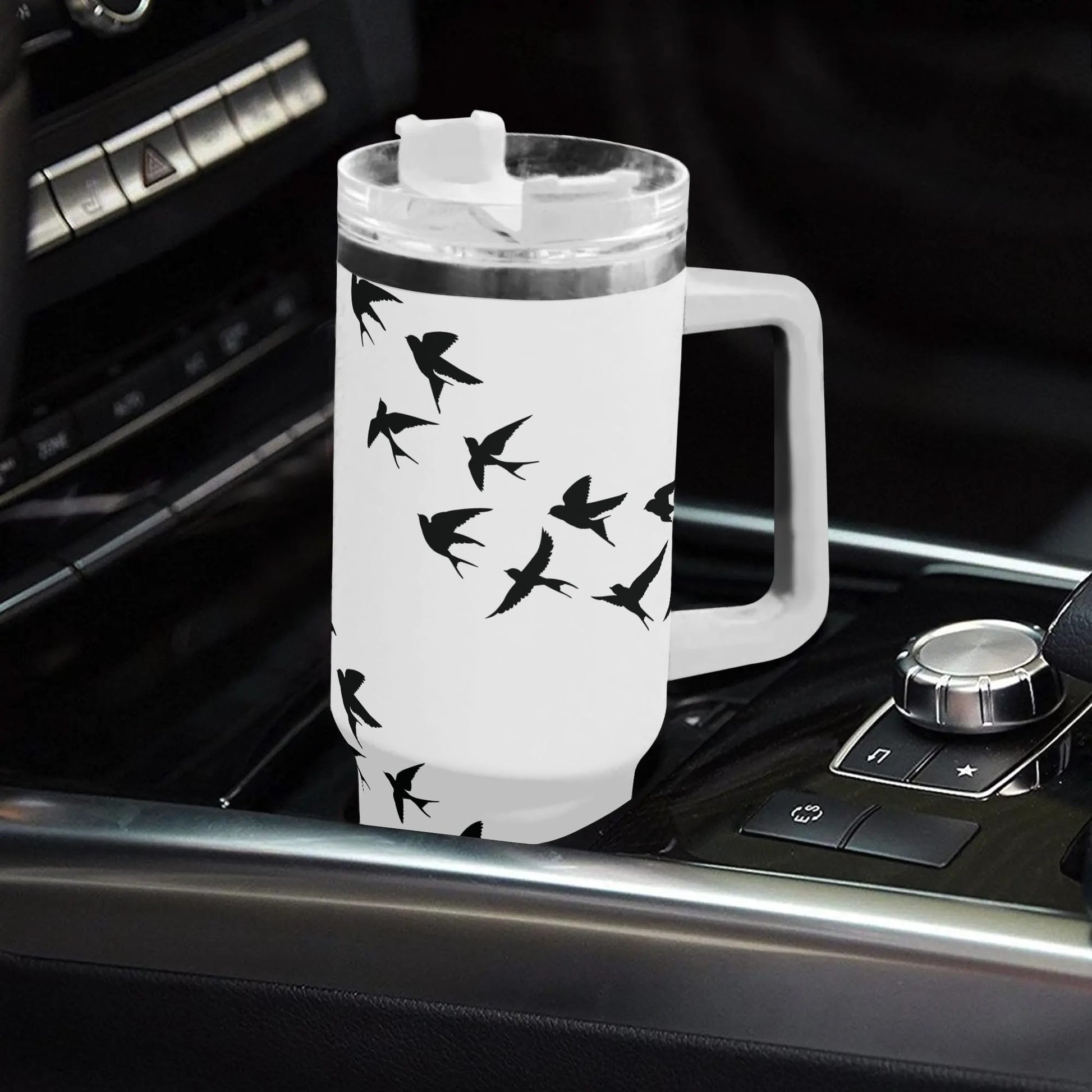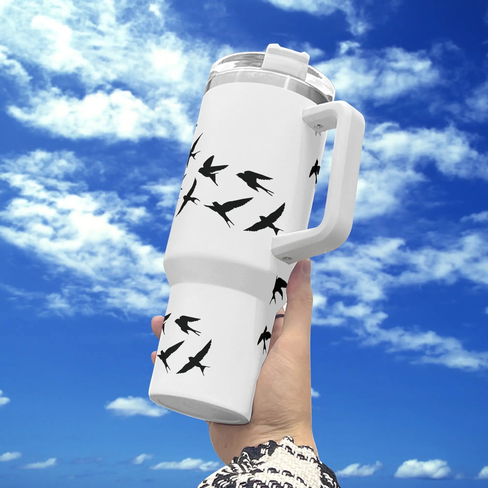 This elegant tumbler features a sleek design adorned with traditional andorinhas (swallows). Perfect for keeping beverages hot or cold, it combines style with practicality for everyday use. This personalized tumbler is the ideal gift for families, friends or those who need to drink large amounts of water. It is also a great choice for birthday, wedding, engagement, anniversary, Christmas, Thanksgiving, housewarming gift.