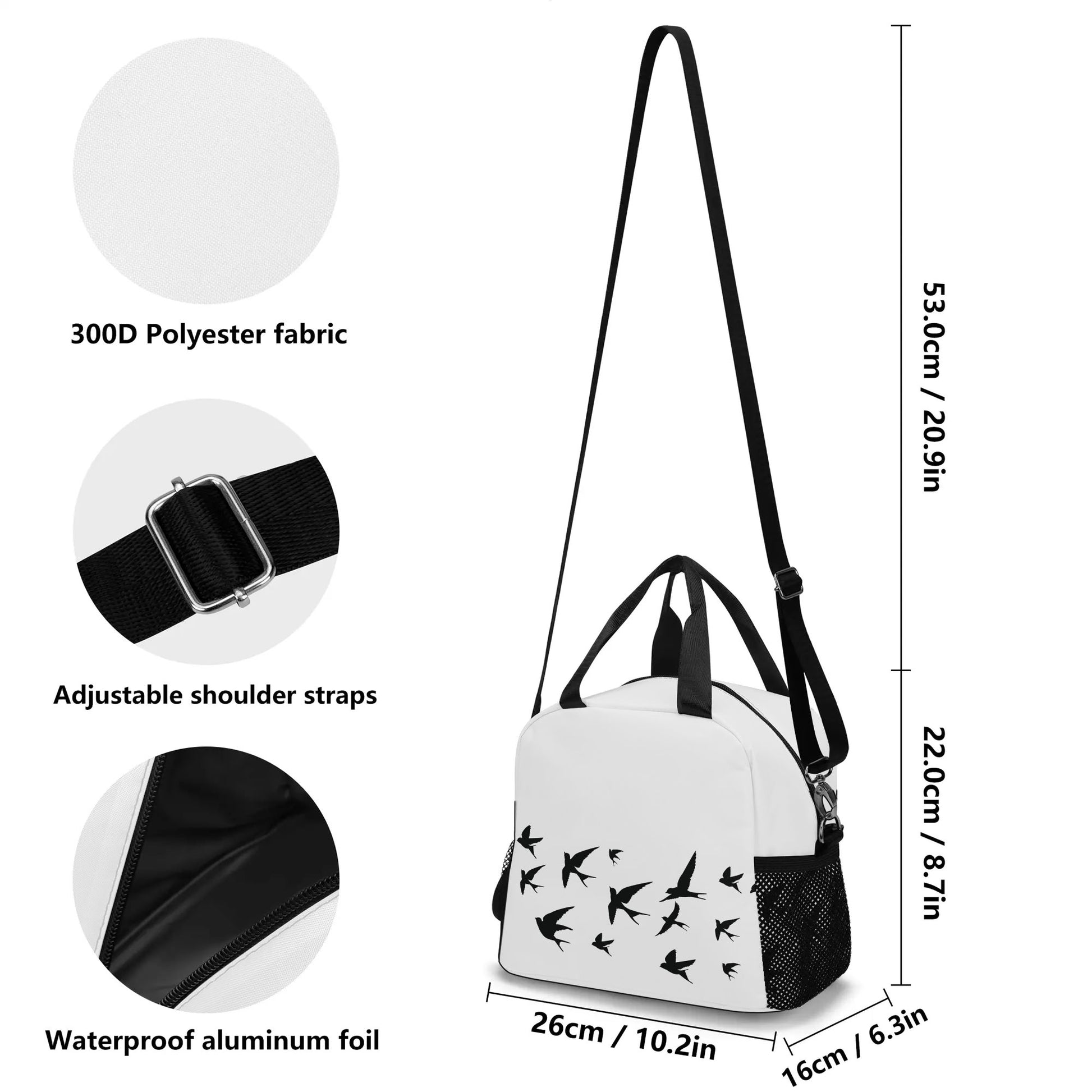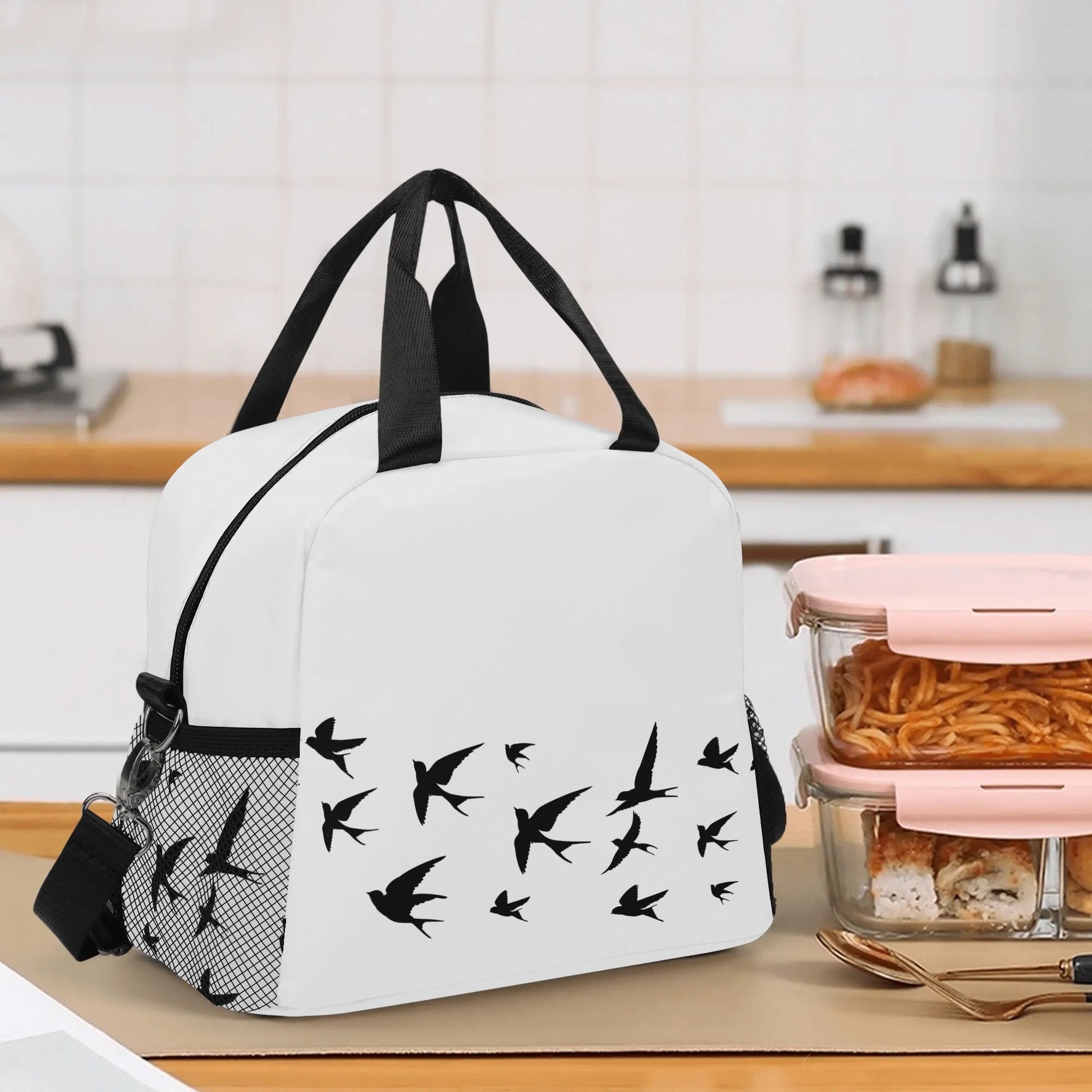 Elevate your lunchtime experience with our Andorinhas Lunch Bag. Features a large-capacity design, ensuring your meals stay fresh in both warm and cold conditions. The long adjustable strap adds versatility, perfect for use at work or school. With stable placement to securely hold your lunchbox and fruits. Its minimalist design makes it suitable for various activities such as gym sessions, hiking, travel, camping, or family daily use.
