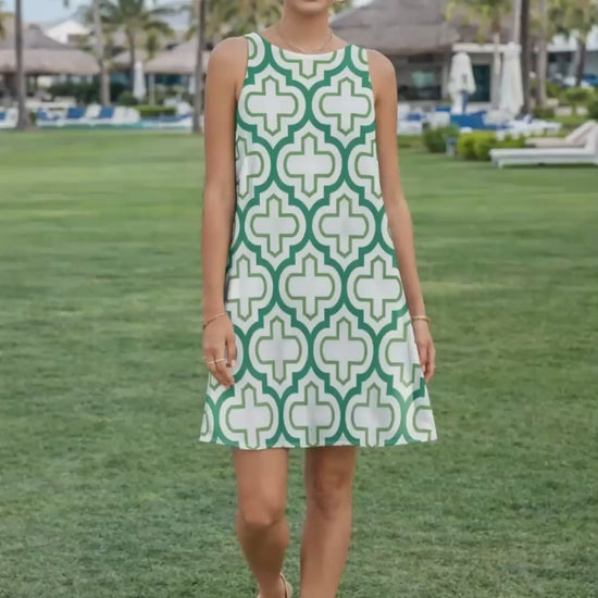 Featuring a classic round neckline and clean sleeveless design, the Aurea dress highlights a simple, polished silhouette. The A-line shape drapes softly and flatters a variety of body types, providing a relaxed fit that feels confident and comfortable from morning through evening.