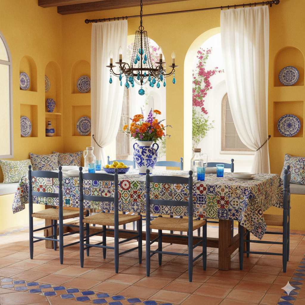 This colorful cotton tablecloth is fade-resistant and easy to care for, ensuring it looks fresh wash after wash. Perfect for both indoor and outdoor dining, it’s ideal for family dinners, brunches on the patio, festive parties, or holiday gatherings. Bring the charm of Mediterranean style and bohemian flair to your home with the Colorido Tablecloth—a timeless piece of dining décor that turns every meal into a joyful occasion.