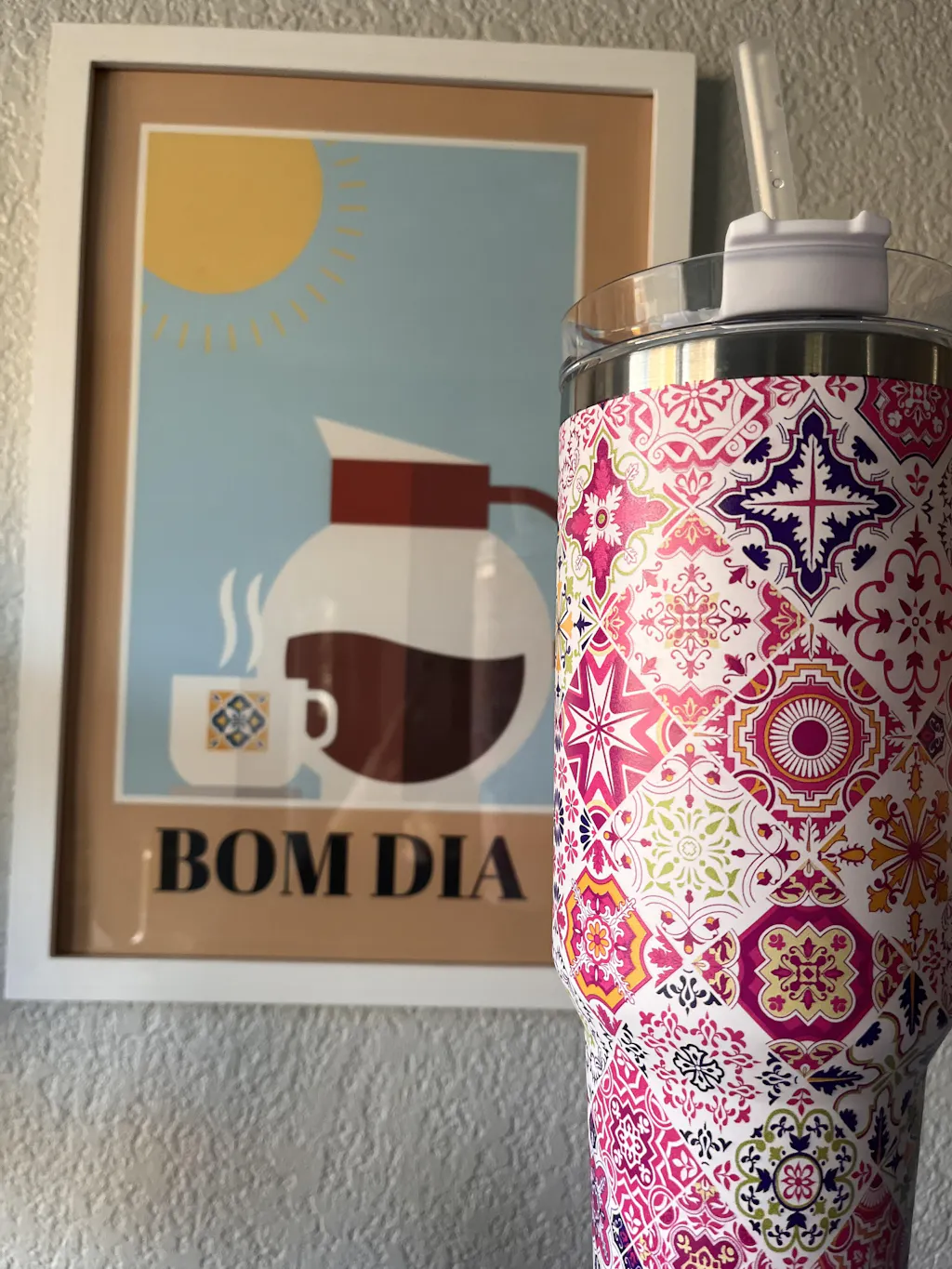 * Cup Set : 40oz tumblr with a handle and straw and a tumbler lid .