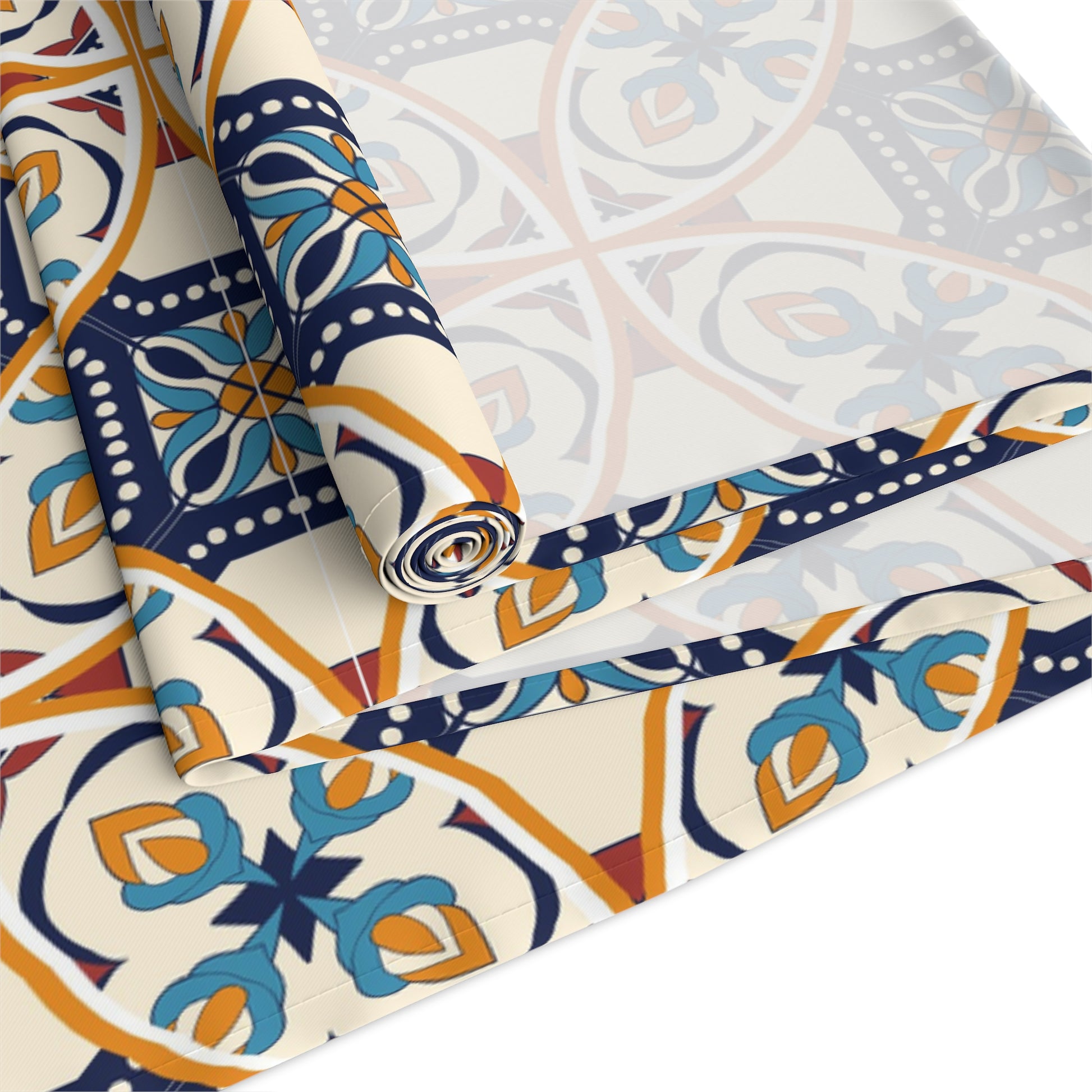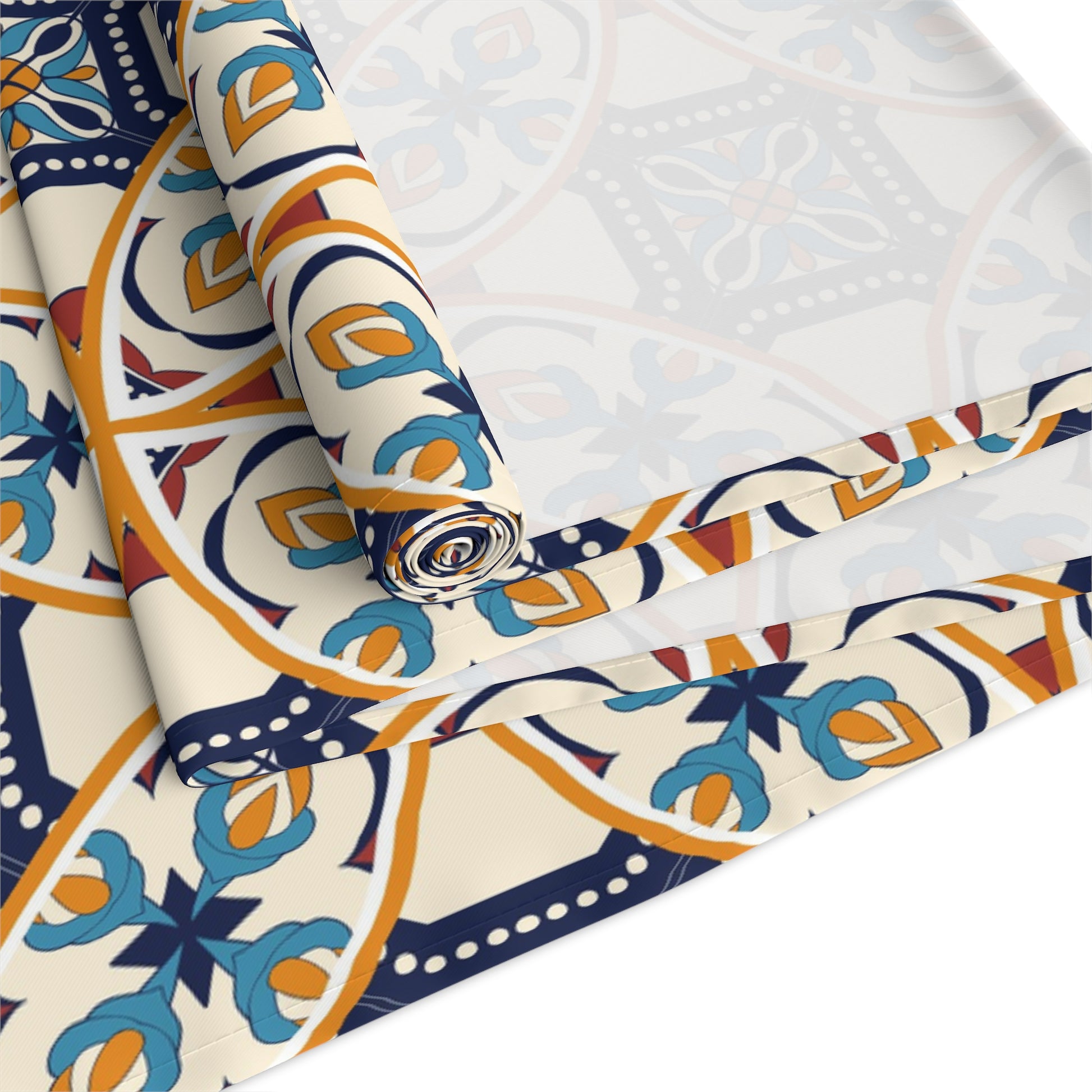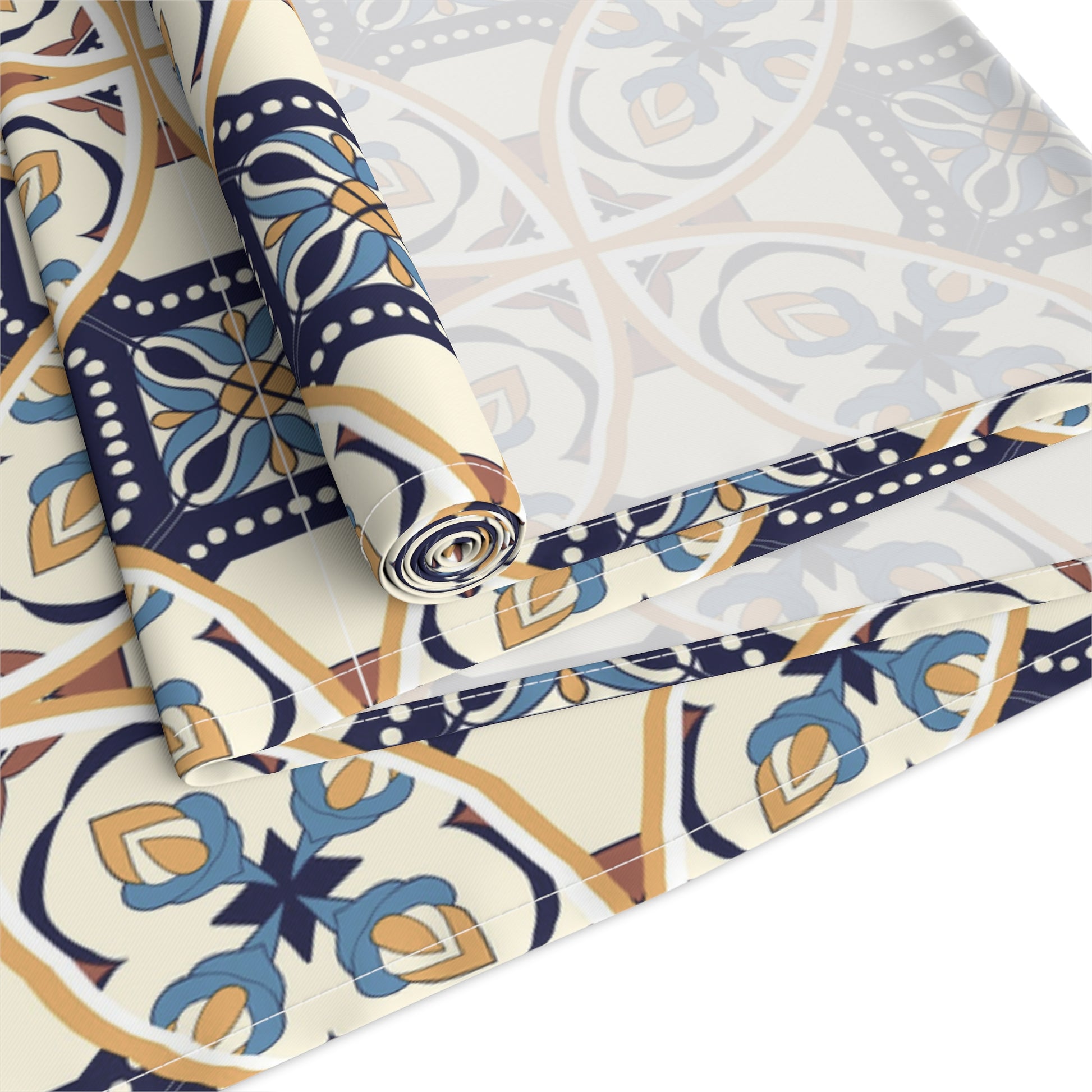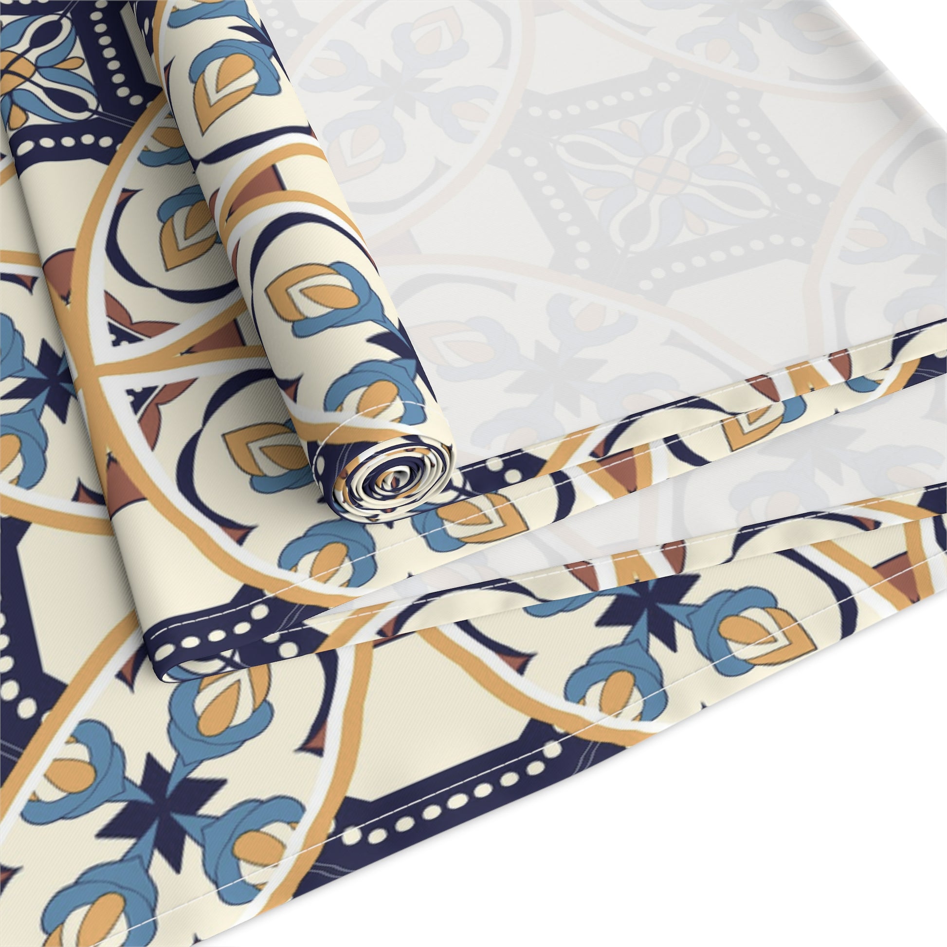 Elevate your dining experience with this exquisite table runner featuring a unique Portuguese tile pattern in shades of blue and beige. Perfect for adding a touch of elegance to any table setting, this runner is ideal for both casual and formal occasions. Its high-quality fabric ensures durability and easy maintenance, making it a stylish and practical addition to your home decor.