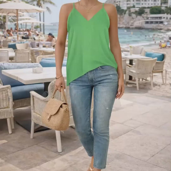 Green V-Neck Spaghetti Strap Tank Top for Women