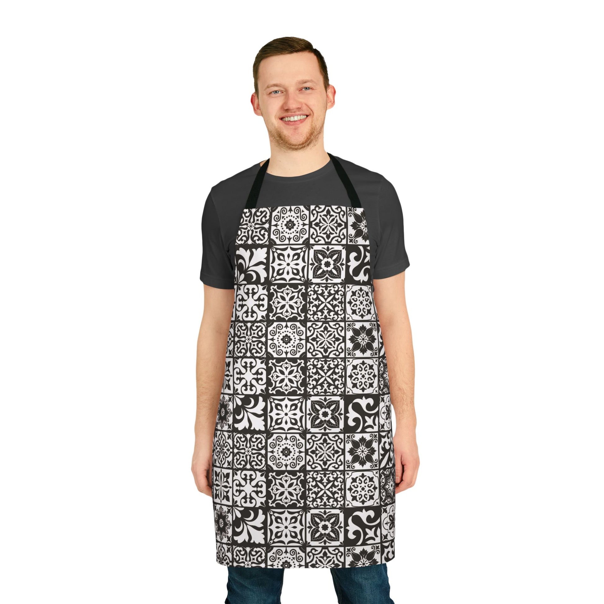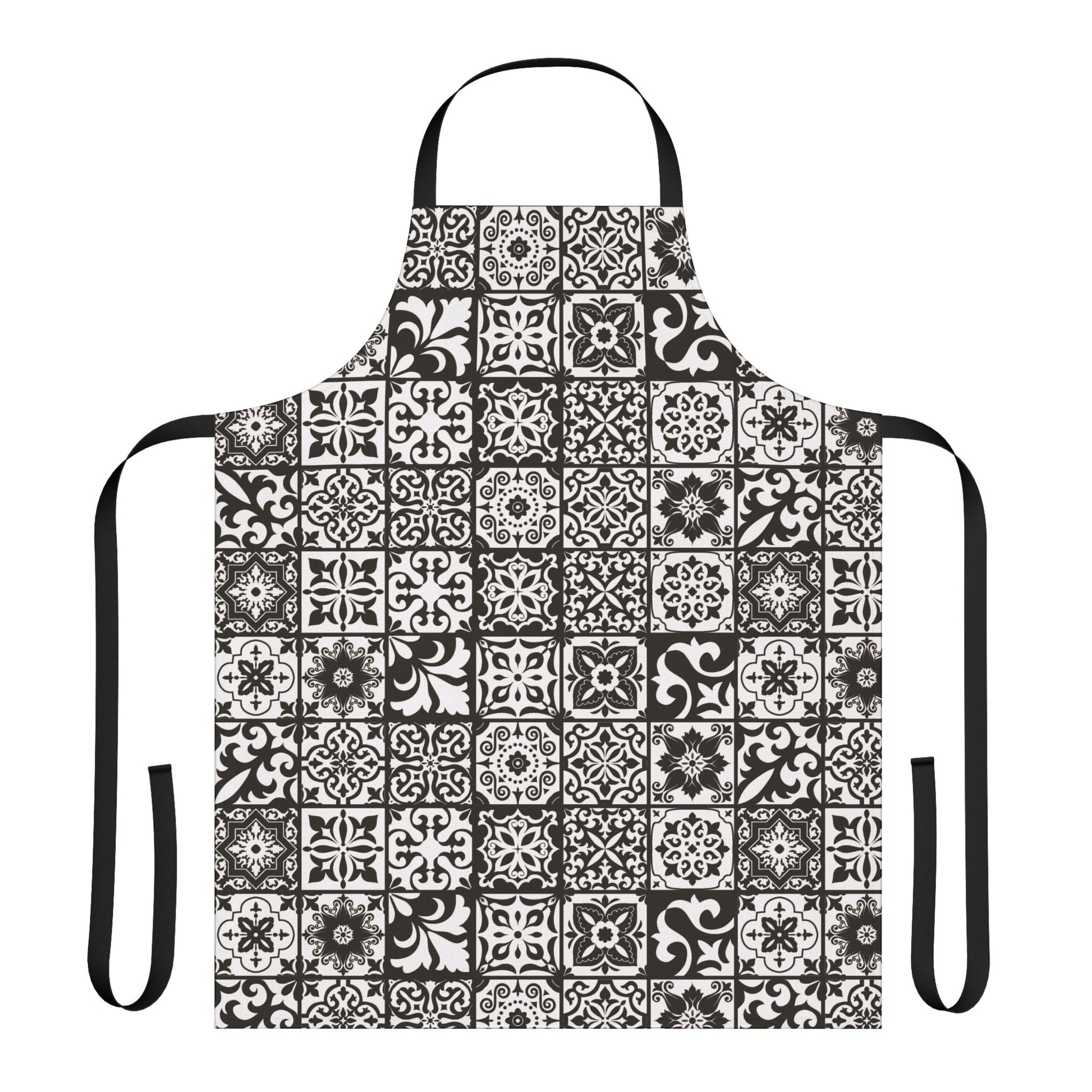 Bring timeless style into your kitchen with this bold apron, featuring a classic black-and-white Portuguese tile pattern. The striking contrast gives it a sophisticated look that pairs just as well with everyday cooking as it does with weekend gatherings or outdoor grilling.