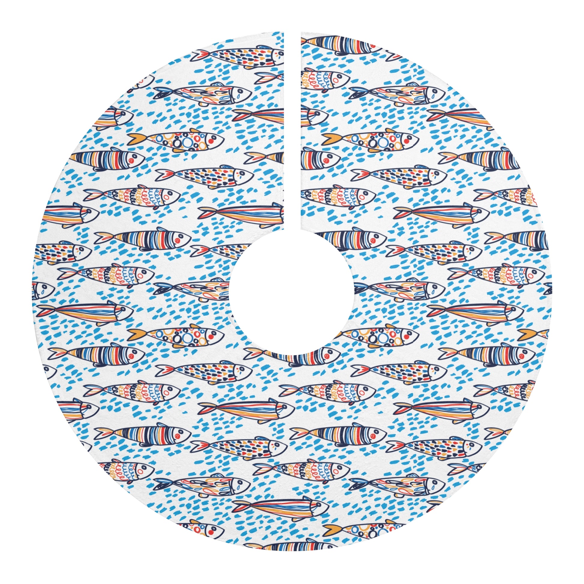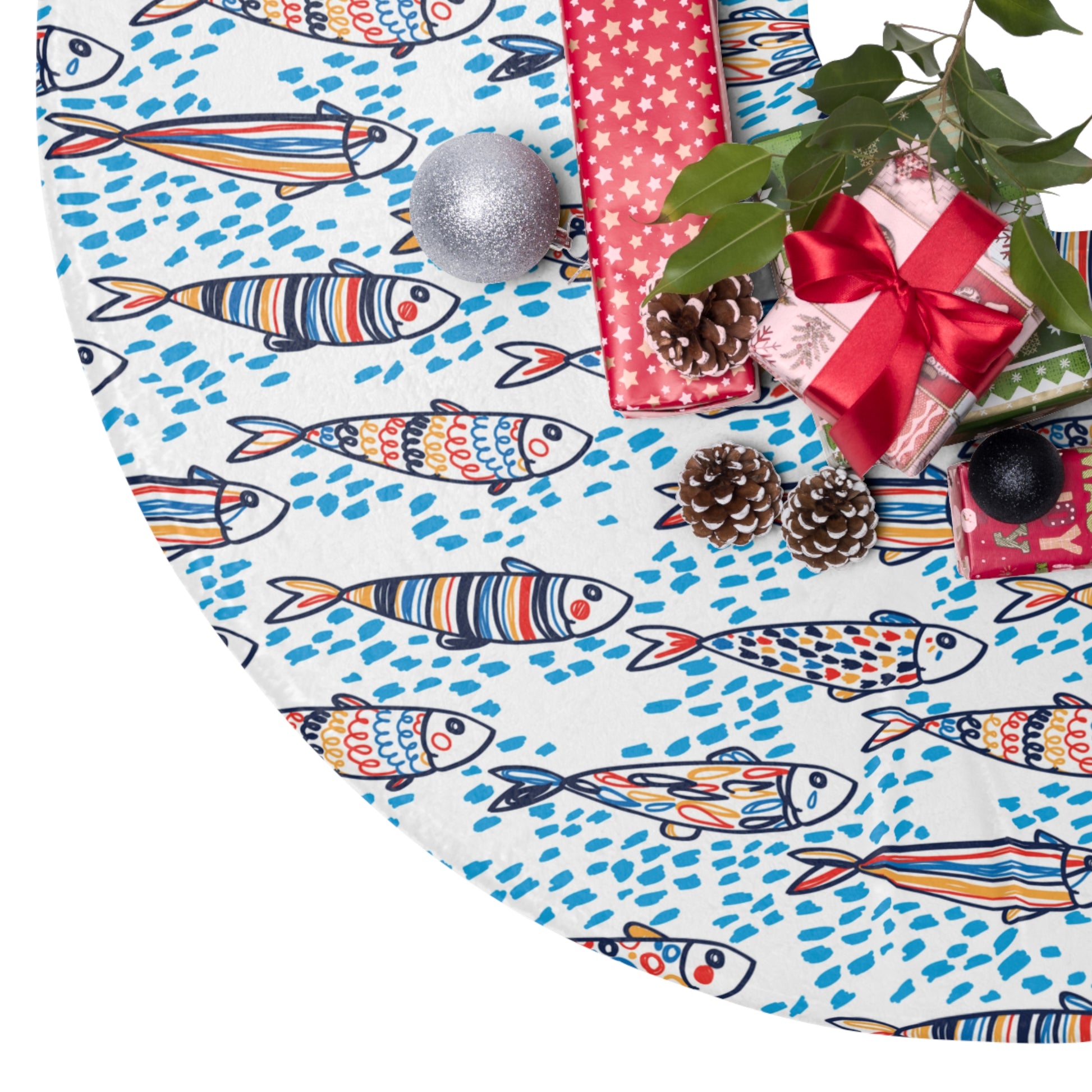 Add a festive touch to your holiday decor with our vibrant Christmas tree skirt, featuring a colorful sardine pattern. This unique design blends Portuguese tradition with holiday charm, creating a bright, fun atmosphere around your Christmas tree.