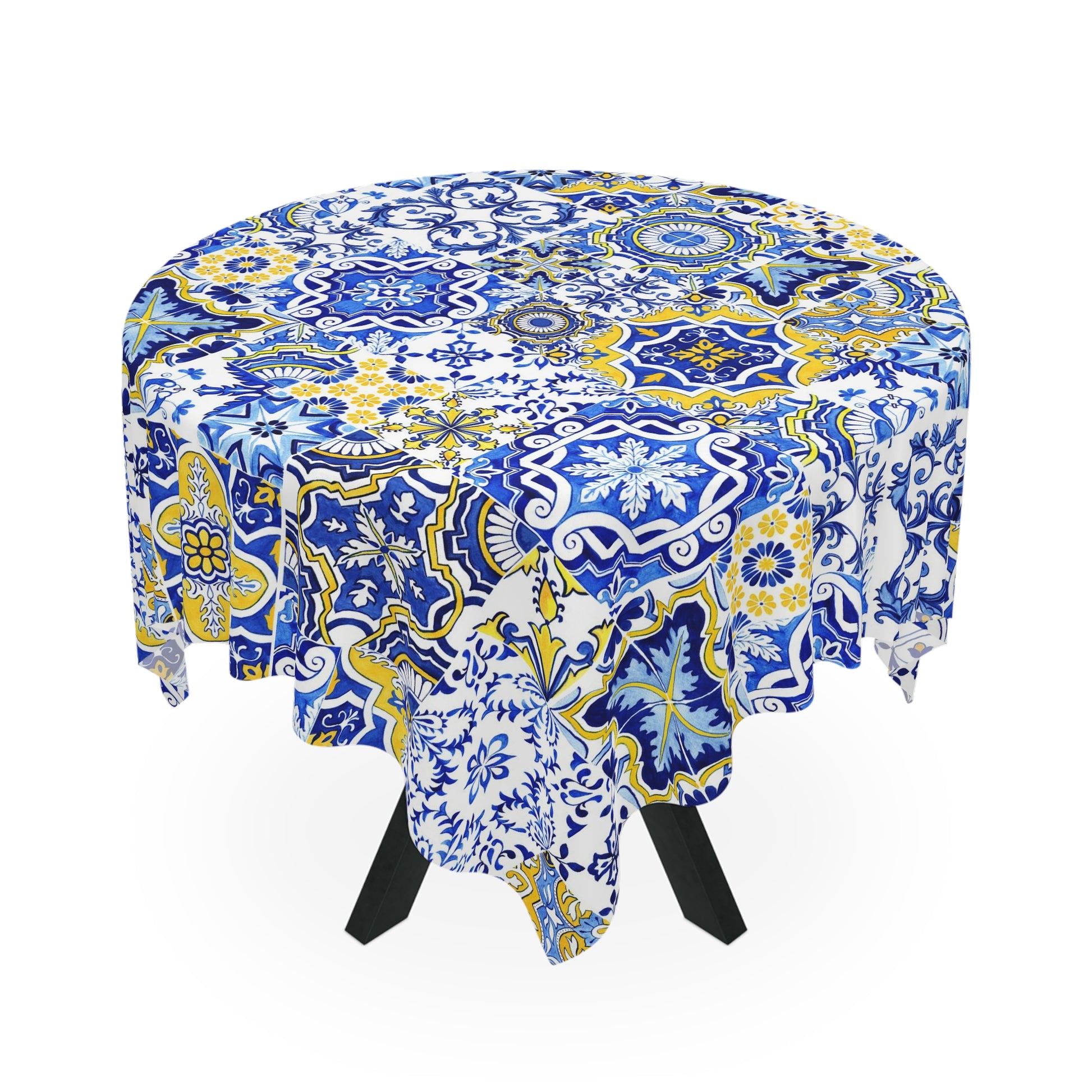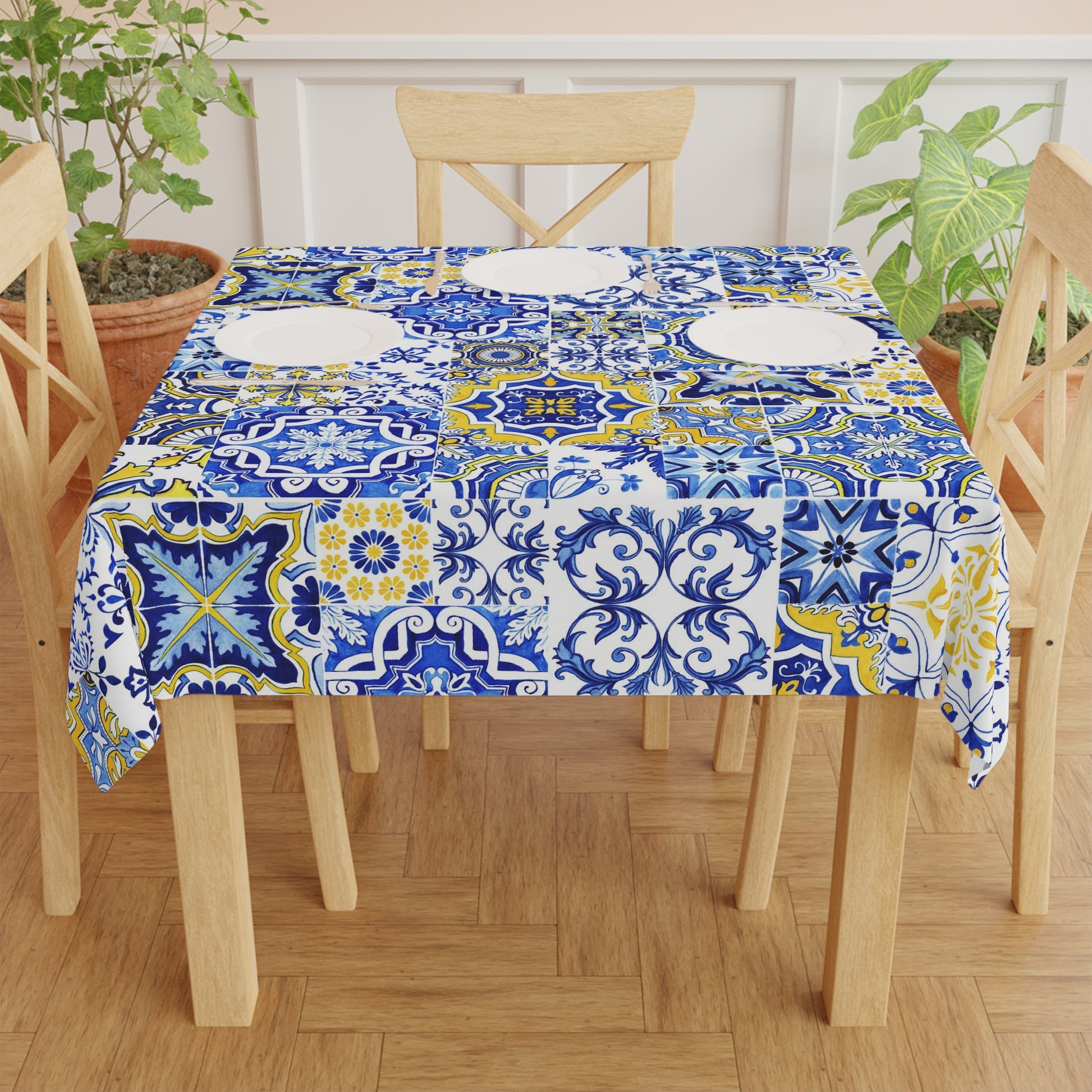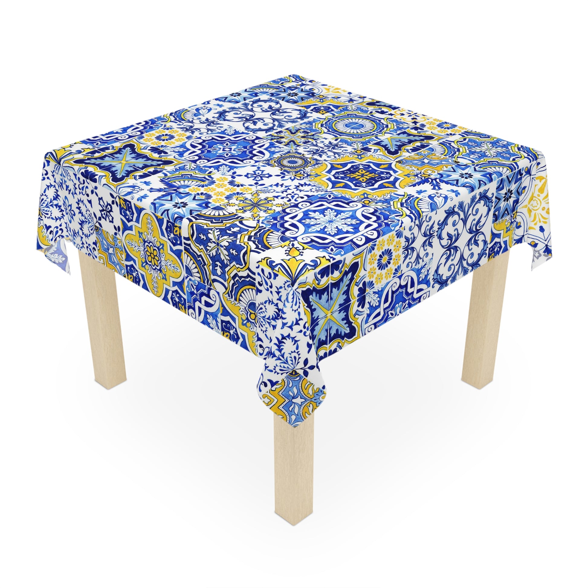 Transform your dining experience with this stunning tablecloth. Featuring a vibrant and intricate pattern in rich blues and yellows, this tablecloth adds a splash of color and elegance to any table setting. Made from 100% polyester, it’s not only durable but also soft to the touch, making it a practical choice for both everyday use and special occasions. Perfect for family gatherings, holiday dinners, and celebrations, this tablecloth sets the stage for memorable moments. Ideal for anyone who loves to entertain or decorate their home with style, it seamlessly fits into any kitchen or dining room decor. Whether you're hosting a festive dinner or enjoying a quiet meal, this tablecloth will elevate your atmosphere and bring a touch of sophistication to your table.