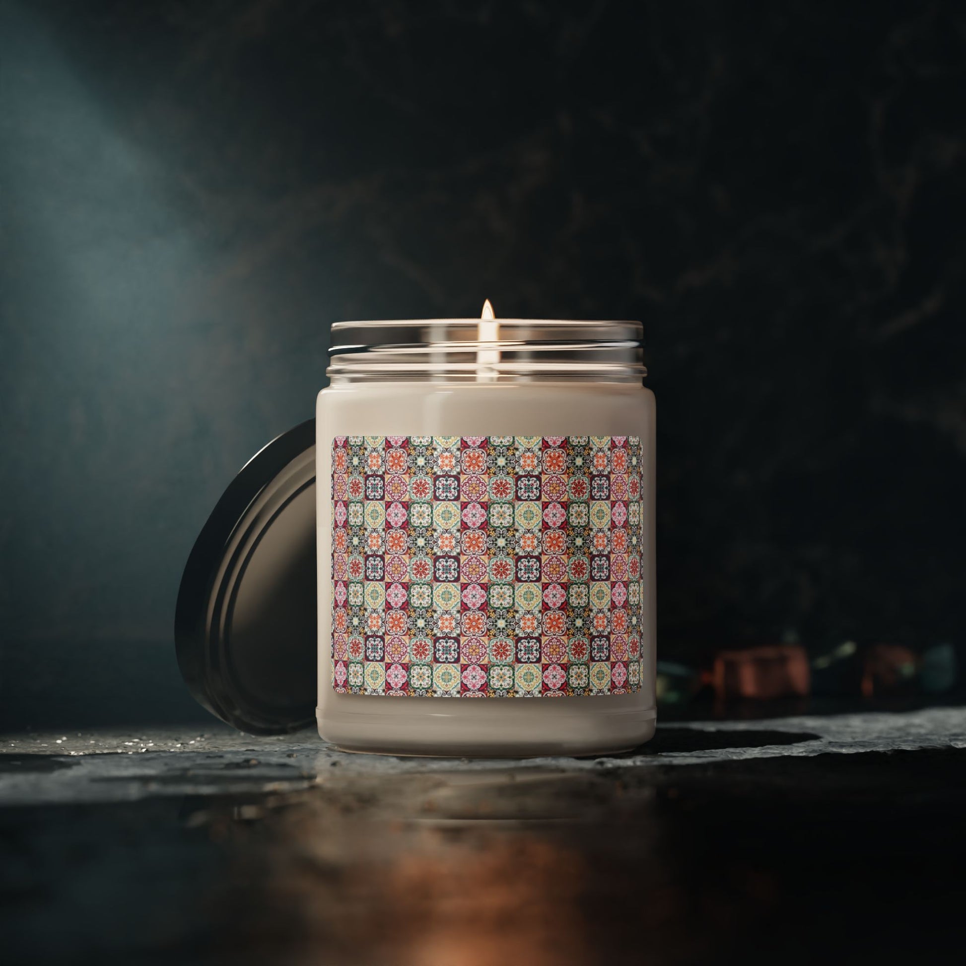 Illuminate your space with the charm of traditional Portuguese design and soothing aromas. This candle features a vibrant, multicolored azulejo tile pattern, adding a touch of artistry and culture to any room. Packed with immersive aromas, these scented candles come in 9oz glass jars and are one size (2.8″ × 3.5″) (7.1cm × 8.8cm), perfect for cozy home decor. Made with a 100% natural soy wax blend and featuring a 100% cotton wick, this candle not only enhances the ambiance but also offers a clean, eco-friendly burn. Bring warmth, light, and tradition to your living space with this elegant candle.