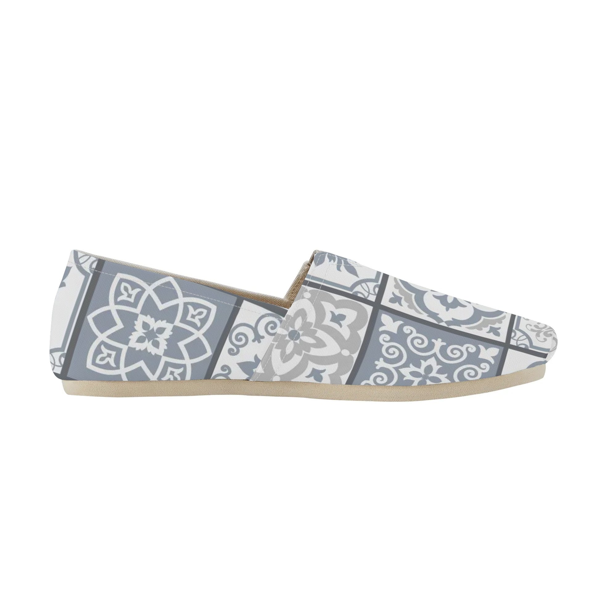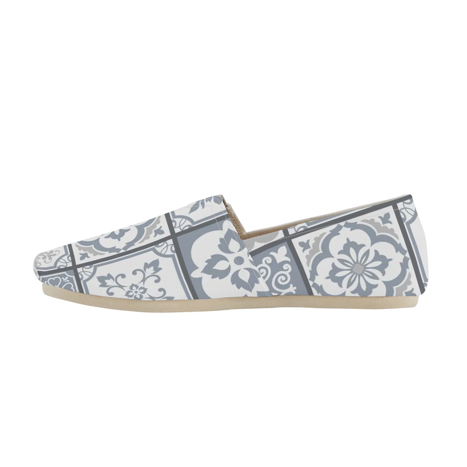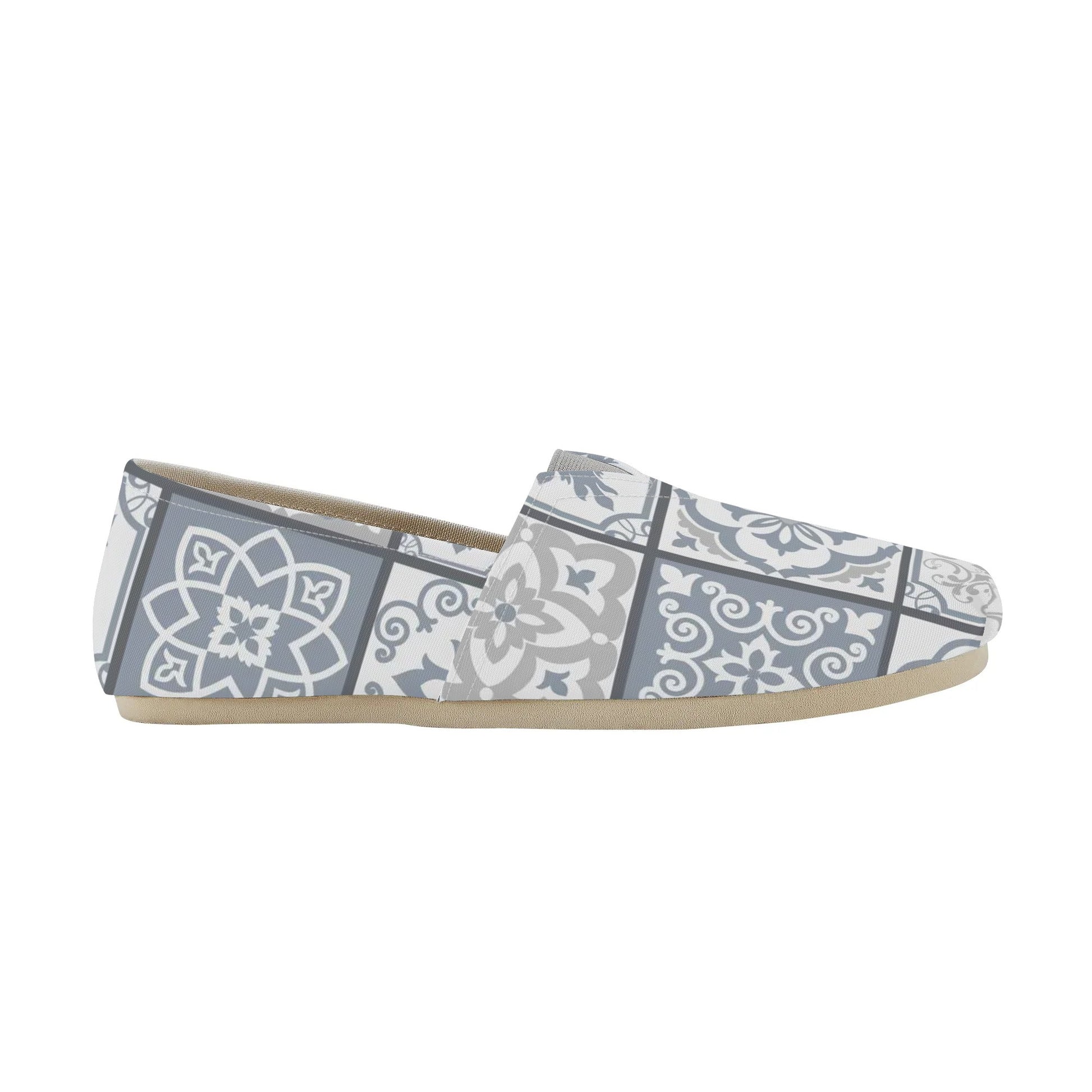 Entre no estilo com nossos sapatos casuais de lona femininos Cinzento com padrão de azulejos portugueses cinza claro. Estes sapatos apresentam uma construção de estilo plano e deslizante para calçar e tirar facilmente, garantindo comodidade para o seu estilo de vida agitado. Fabricados com parte superior em lona de alta qualidade, proporcionam um ajuste confortável e respirável, tornando-os perfeitos para qualquer estação. Esses sapatos exigem pouca manutenção e são fáceis de cuidar, oferecendo durabilidade e flexibilidade excepcionais. Quer esteja a fazer recados ou a desfrutar de um dia casual, estes sapatos elegantes e práticos serão a sua escolha. Perfeito para adicionar um toque de elegância a qualquer look.