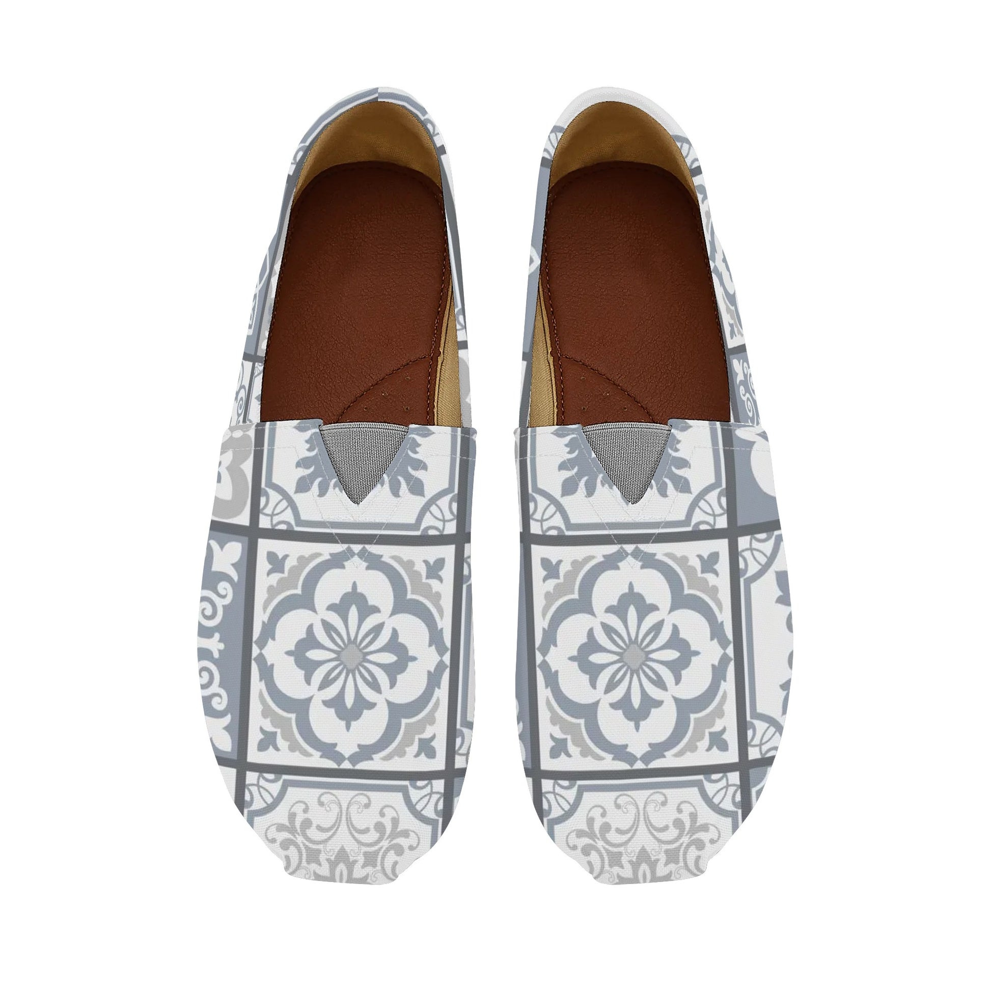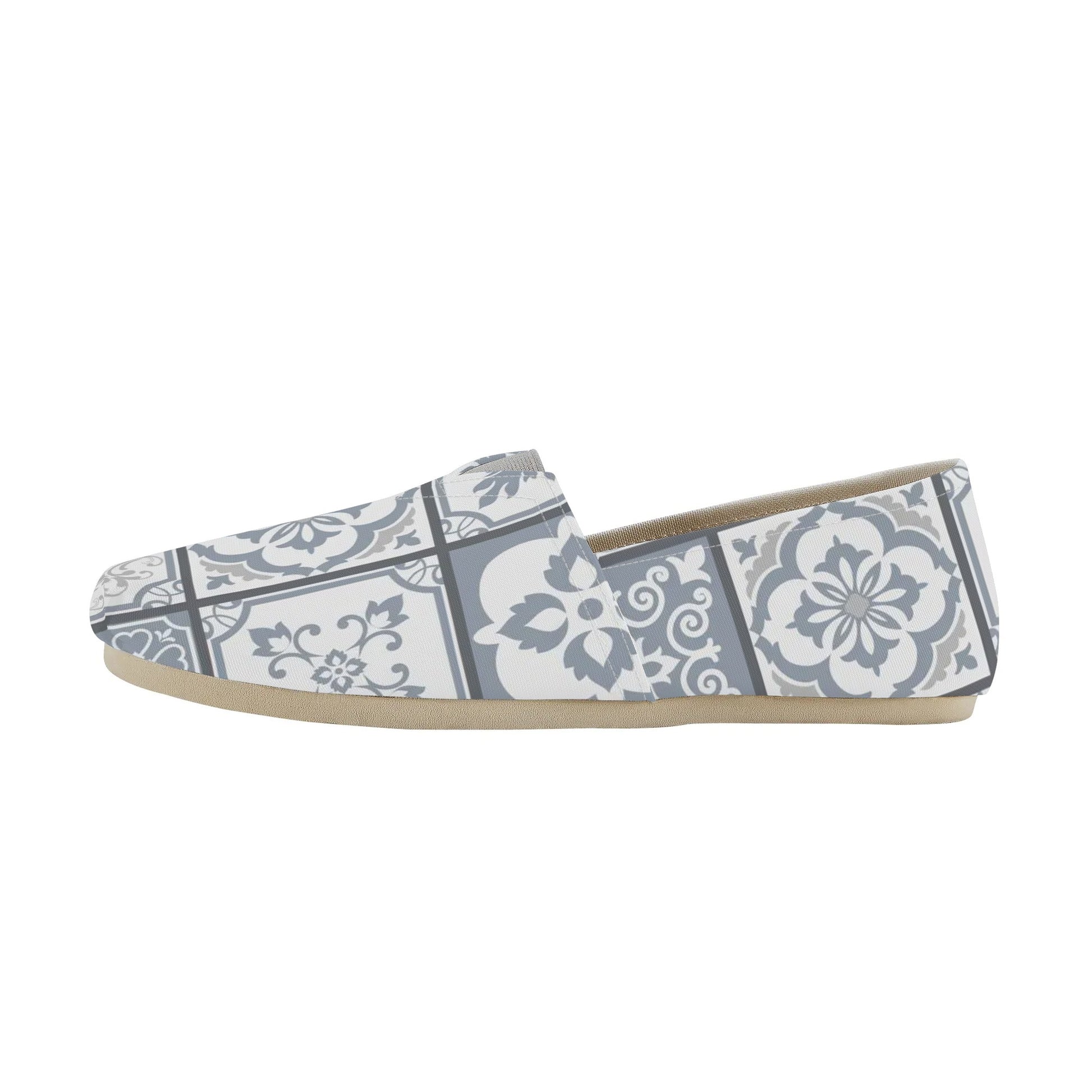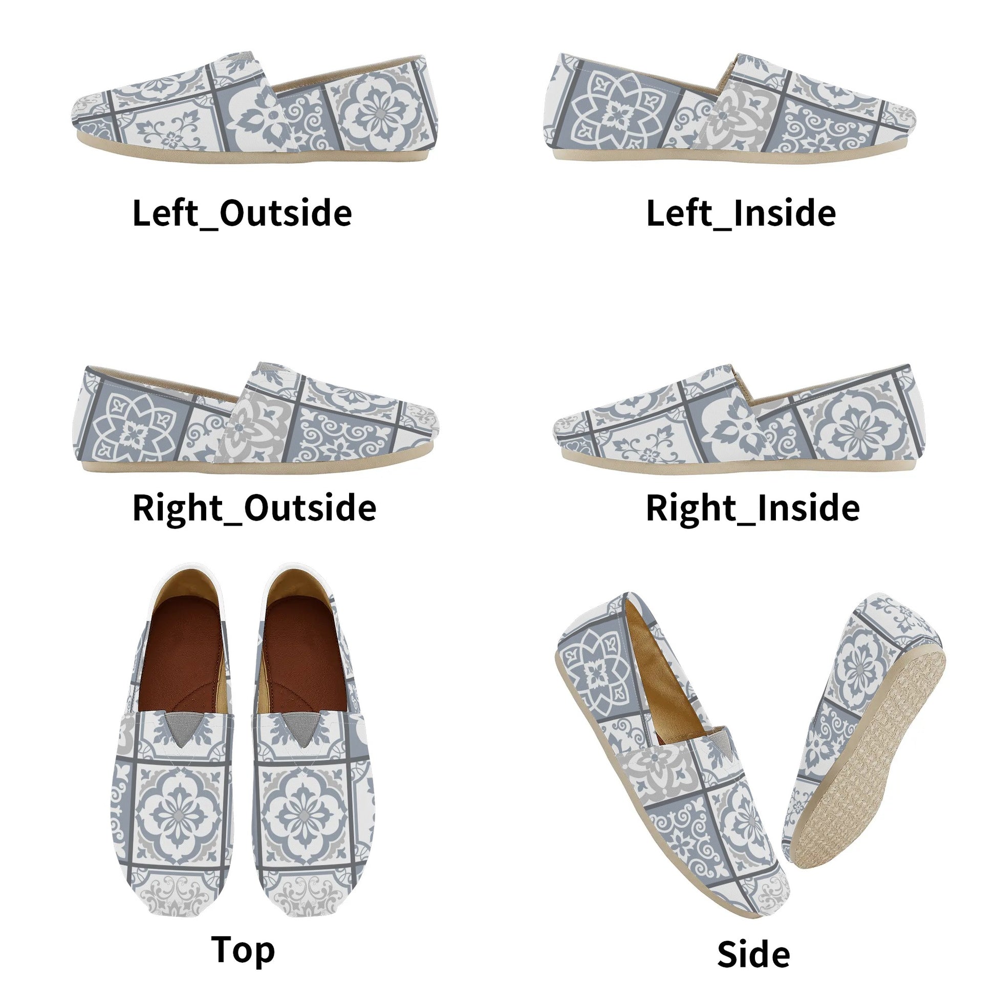 Entre no estilo com nossos sapatos casuais de lona femininos Cinzento com padrão de azulejos portugueses cinza claro. Estes sapatos apresentam uma construção de estilo plano e deslizante para calçar e tirar facilmente, garantindo comodidade para o seu estilo de vida agitado. Fabricados com parte superior em lona de alta qualidade, proporcionam um ajuste confortável e respirável, tornando-os perfeitos para qualquer estação. Esses sapatos exigem pouca manutenção e são fáceis de cuidar, oferecendo durabilidade e flexibilidade excepcionais. Quer esteja a fazer recados ou a desfrutar de um dia casual, estes sapatos elegantes e práticos serão a sua escolha. Perfeito para adicionar um toque de elegância a qualquer look.